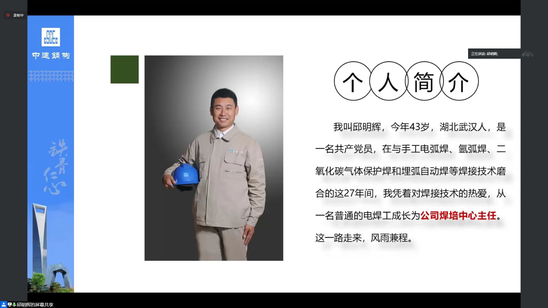 随后,邱明辉老师结合22年的工作经验向大家讲述了工匠精神的求精、创新和传承。他详细介绍了智能制造与焊接方向融合以及“便携式MINI型弧焊机器人”的应用前景,并向研究生传授“创新与合作”工作方法。他表示,创新就如同“补丁”,会更加完善建筑行业的“大网”,而合作就是将“补丁”和“大网”完美结合的粘合剂。邱明辉老师通过讲述他本人建设中央援港应急医院项目的经历,呼吁研究生树立责任意识,强化担当精神,以履职尽责、攻坚克难、干事创业的实际行动为中华民族伟大复兴添砖加瓦。