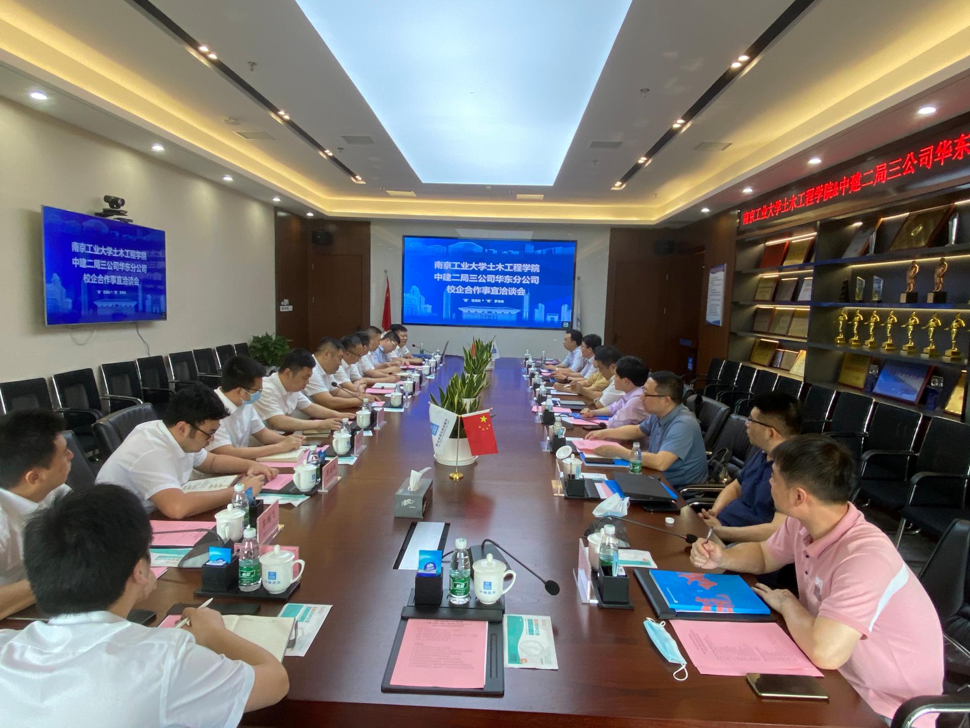 刘令春书记对张涛书记一行表示热烈欢迎并对公司情况做了全面介绍,张涛书记对公司长期以来对学院发展的关心支持表示感谢,并用“感情”、“科技”、“人才”三个词肯定了过去学院与公司的合作成果与共创美好未来的设想,希望通过党建联建共建,凝聚学院产教融合的特色优势。随后,双方代表结合自身学科背景和专业方向就党建联建共建、教学实践、科学研究、人才培养等方面提出具体合作建议。双方表示,要通过共建功能型党支部、校企同上党课等,以产教融合推动党建与业务深度融合;要借助公司承担的重大工程项目,加强工程案例教学与生产实习合作;要发挥各自优势,在编制标准、成果报奖、平台申报等方面优势互补,充分发挥协同育人优势。