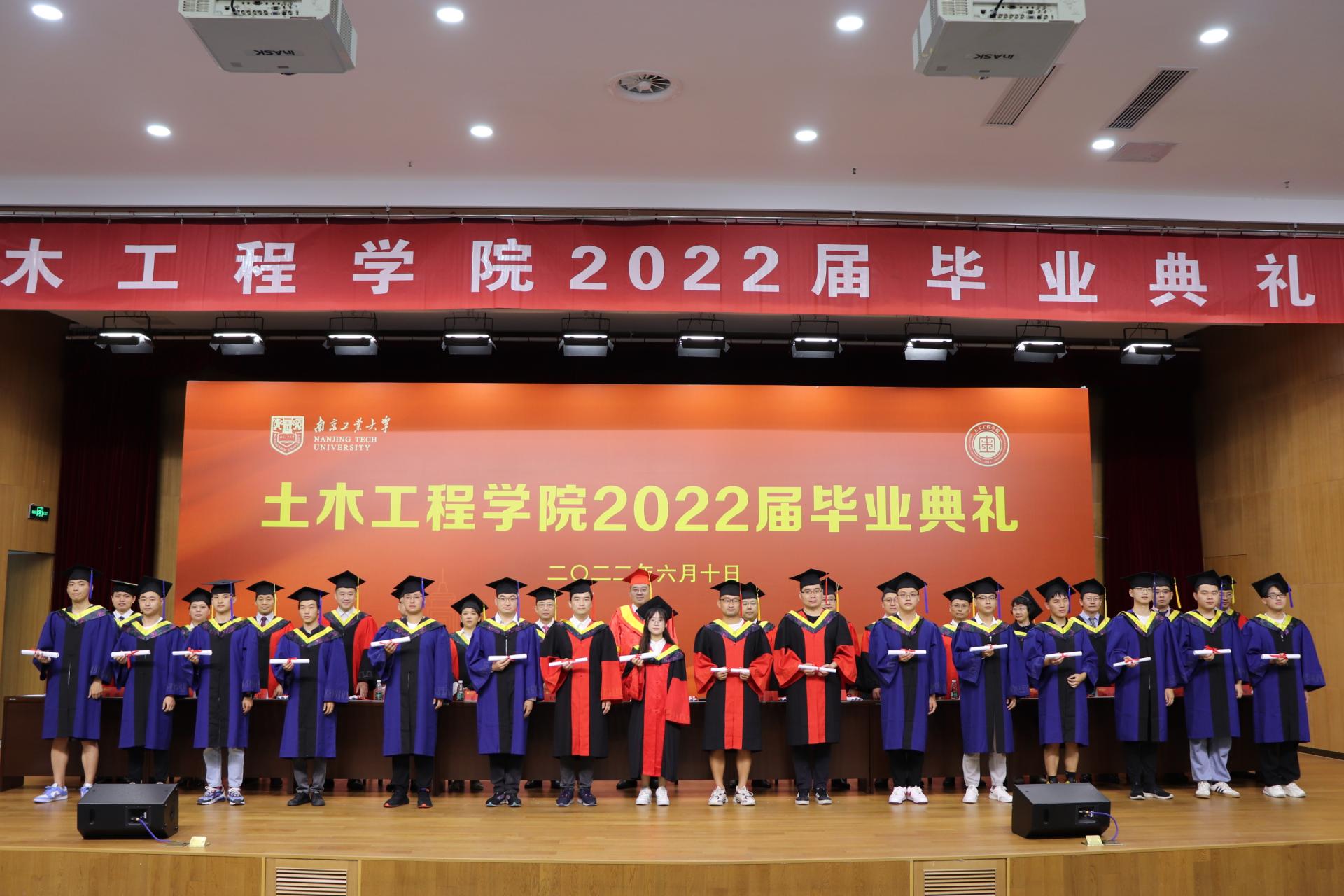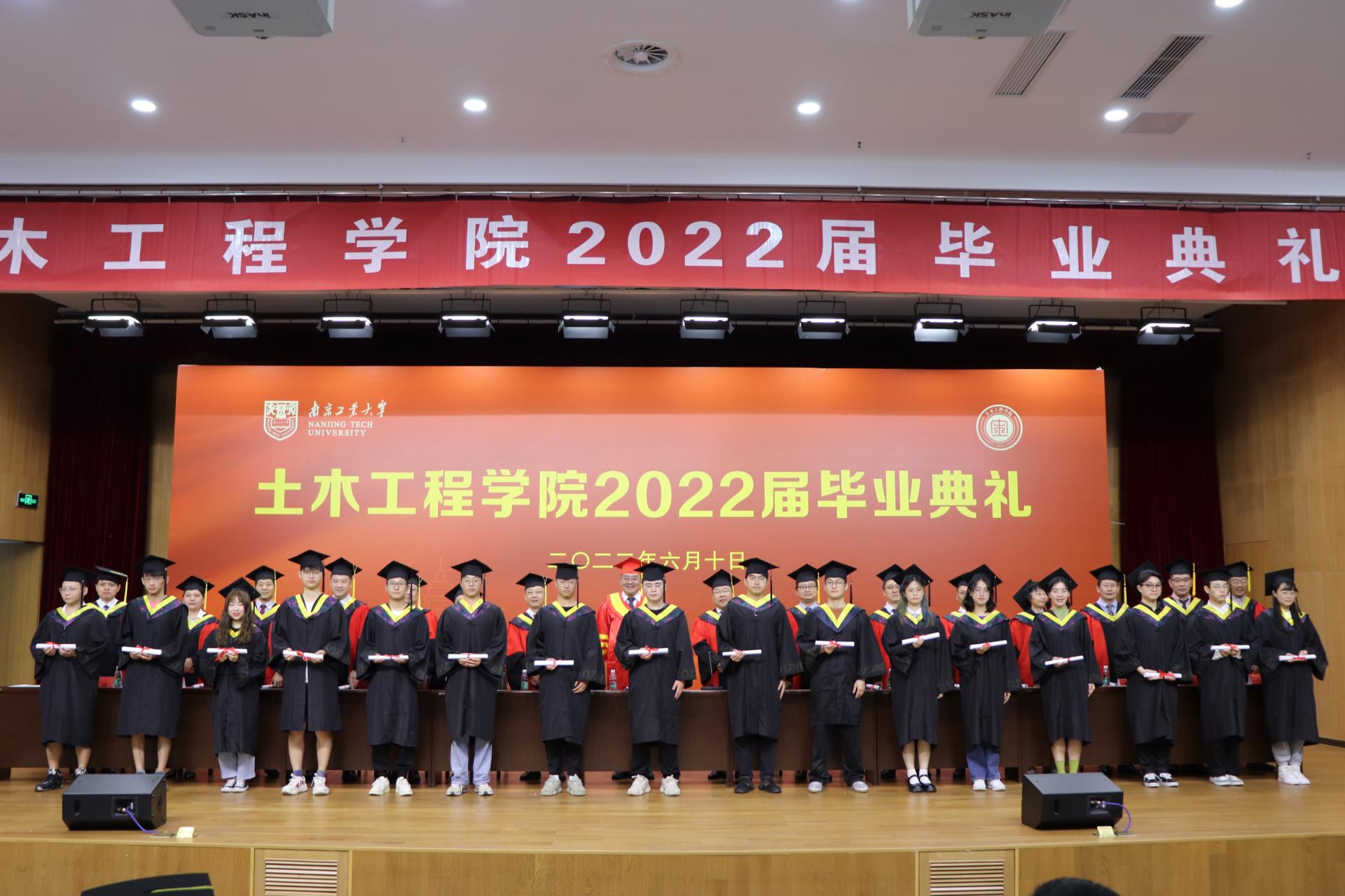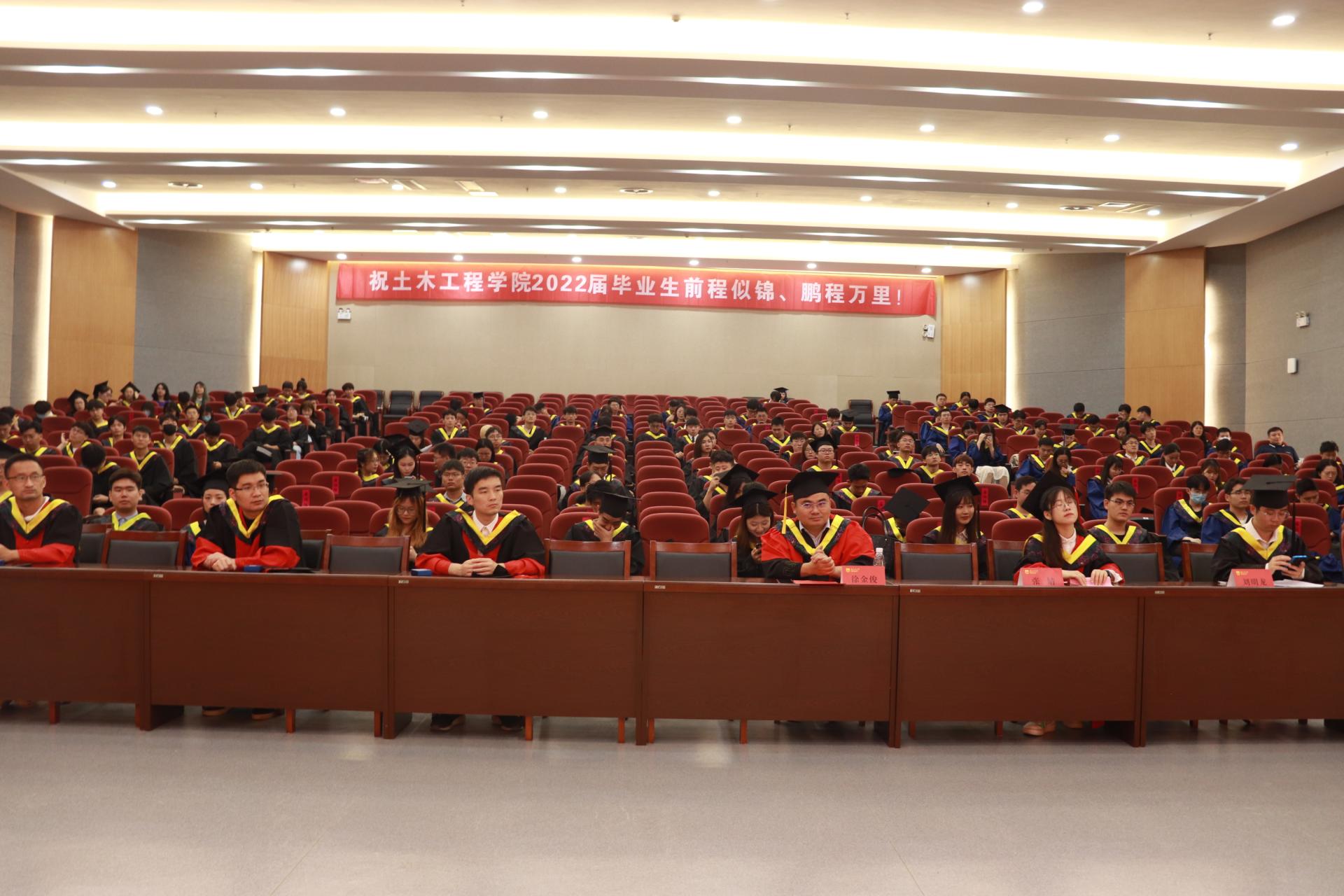 毕业典礼伊始,全场奏唱国歌。院党委书记张涛宣读优秀毕业生推荐名单;院长王曙光宣读“中铁建工”就业工作专项奖学金表彰决定;本科毕业生代表土木1805刘明龙同学、研究生毕业生代表土博1801张婧同学分别发言,分享了自己在校期间的学习生活感悟,感谢学校、学院和师长的谆谆教诲。教师代表徐金俊在发言中表示,希望毕业生勿弃家国情怀,练就天下格局;打磨生存本领,学会筑巢引凤。随后,土木1802班向学院捐赠正冠镜,学院向2022届毕业生代表赠送纪念戒指,毕业生代表朗诵《到祖国需要的地方书写热血青春》。在欢快的音乐声中,在主席台就坐的师长们为毕业生代表授予学位并拨穗。