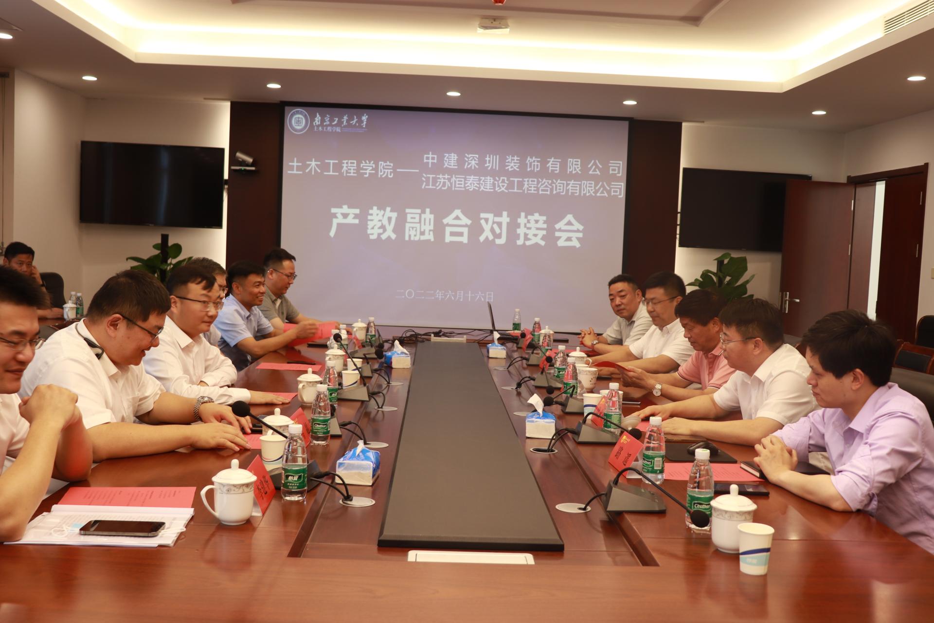 6月16日下午,tyc1286太阳成集团在立德楼101会议室举行产教融对接会。校友会副会长、教育发展基金会理事长高明,中建深圳装饰有限公司华东区域总经理李皓、执行总经理马超、副总经理李建华,江苏恒泰建设工程咨询有限公司董事长、南工大江阴校友会会长修红斌,江阴市交通局工程中心副主任修建良,美洲豹装饰股份公司副总经理、南工大无锡校友会秘书长毛鼎等出席会议。