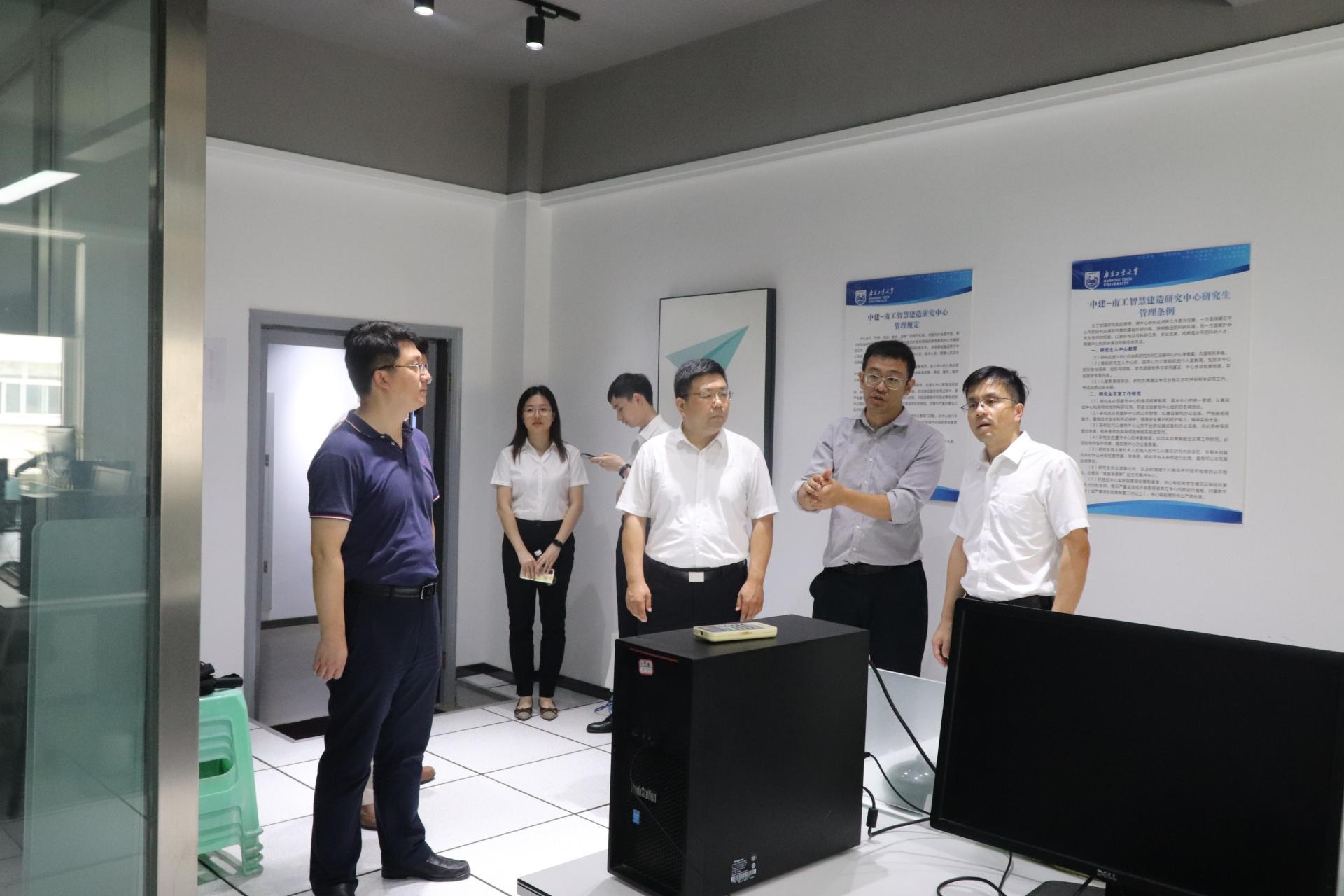 在洽谈会开始之前,在张涛书记、方海副院长的陪同下,王志敏总经理一行参观了土木学院结构与桥梁工程实验室、复合材料结构实验室、木结构实验室以及中建-南工智慧建造研究中心。