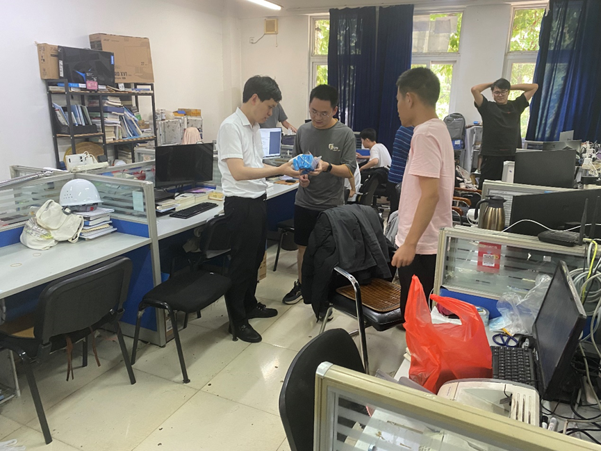 在地坤楼研究生工作室,老师们实地查看了工作室插线板改造工程的施工进展情况,仔细询问了留校研究生的科研工作进展。路遥副书记希望留校研究生加强与导师的沟通,合理安排学习日程,顺利完成各项科研任务。同时,提醒研究生严格遵守疫情防控规定、实验室安全管理规定和校园交通管理规定。