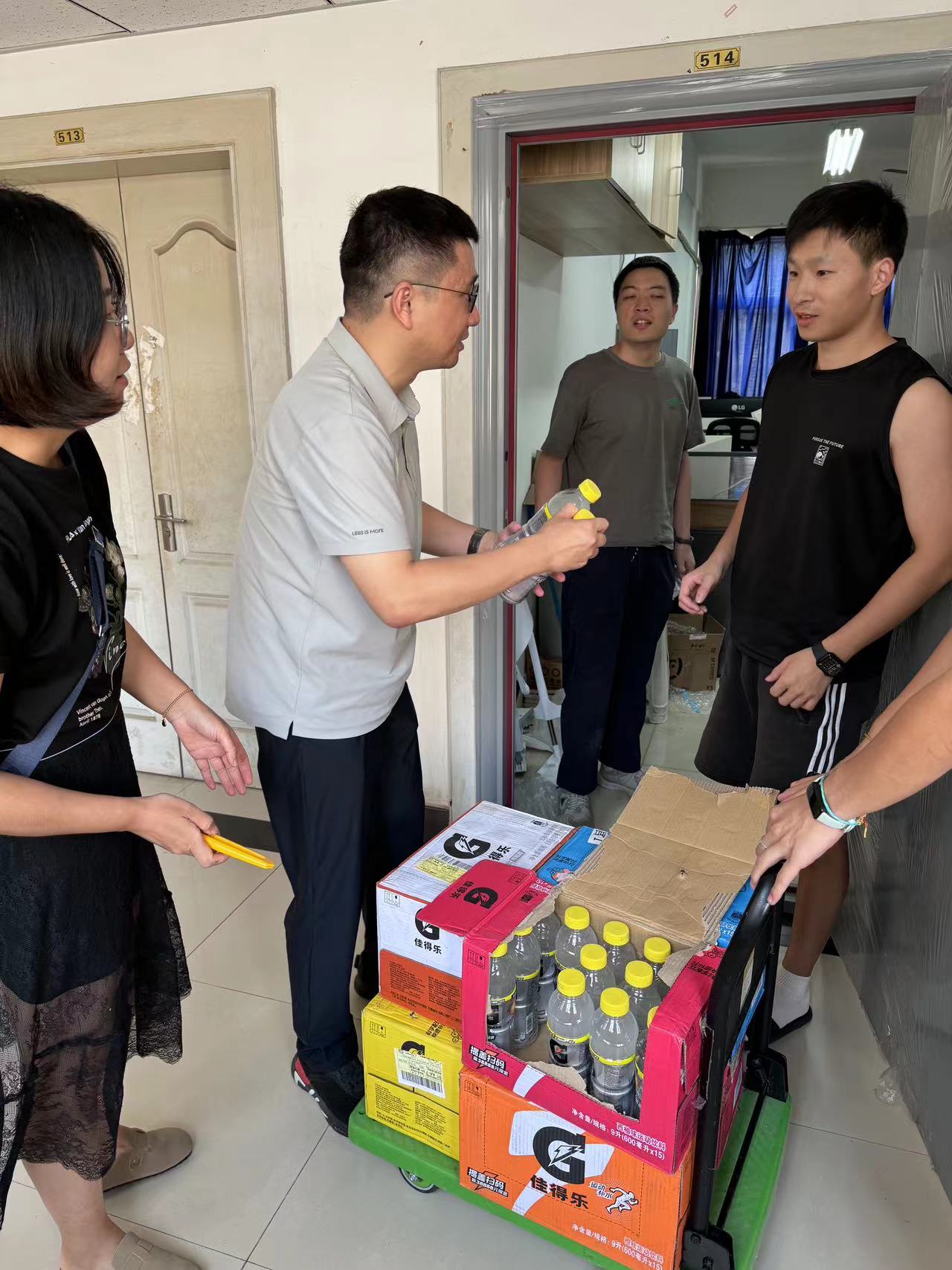 为进一步落实暑期留校学生的教育管理服务工作,了解暑期留校学生的思想学习生活情况,保障学生考研复习、科研工作、学科竞赛等工作有序开展。8月16日下午,tyc1286太阳成集团(分管学生工作)副院长陈鑫,毕业班辅导员谢璐璐、姜小雨,研究生辅导员汤丽娟走进仁智楼考研自习教室、学生宿舍和地坤楼研究生工作室看望慰问留校学生,并代表学院为留校学生送上解暑饮料、清凉茶、草木花露水、香皂、冰凉贴、手持小风扇、蚊不叮、毛巾等防暑降温物资。