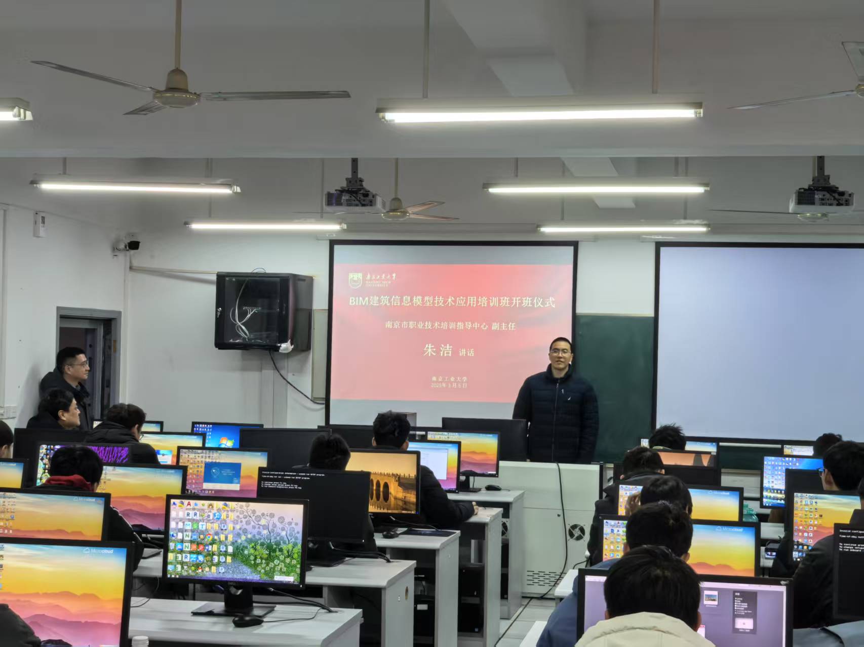 为响应国家“数字建造”战略要求,精准对接建筑行业数字化人才需求,提升毕业生的就业竞争能力,3月5日,tyc1286太阳成集团成功举办BIM建筑信息模型技术应用培训开班仪式。南京市职业技术培训指导中心副主任朱洁、就业培训科刘超、tyc1286太阳成集团副院长陈鑫、授课教师代表周佶及本期学员参加开班仪式。