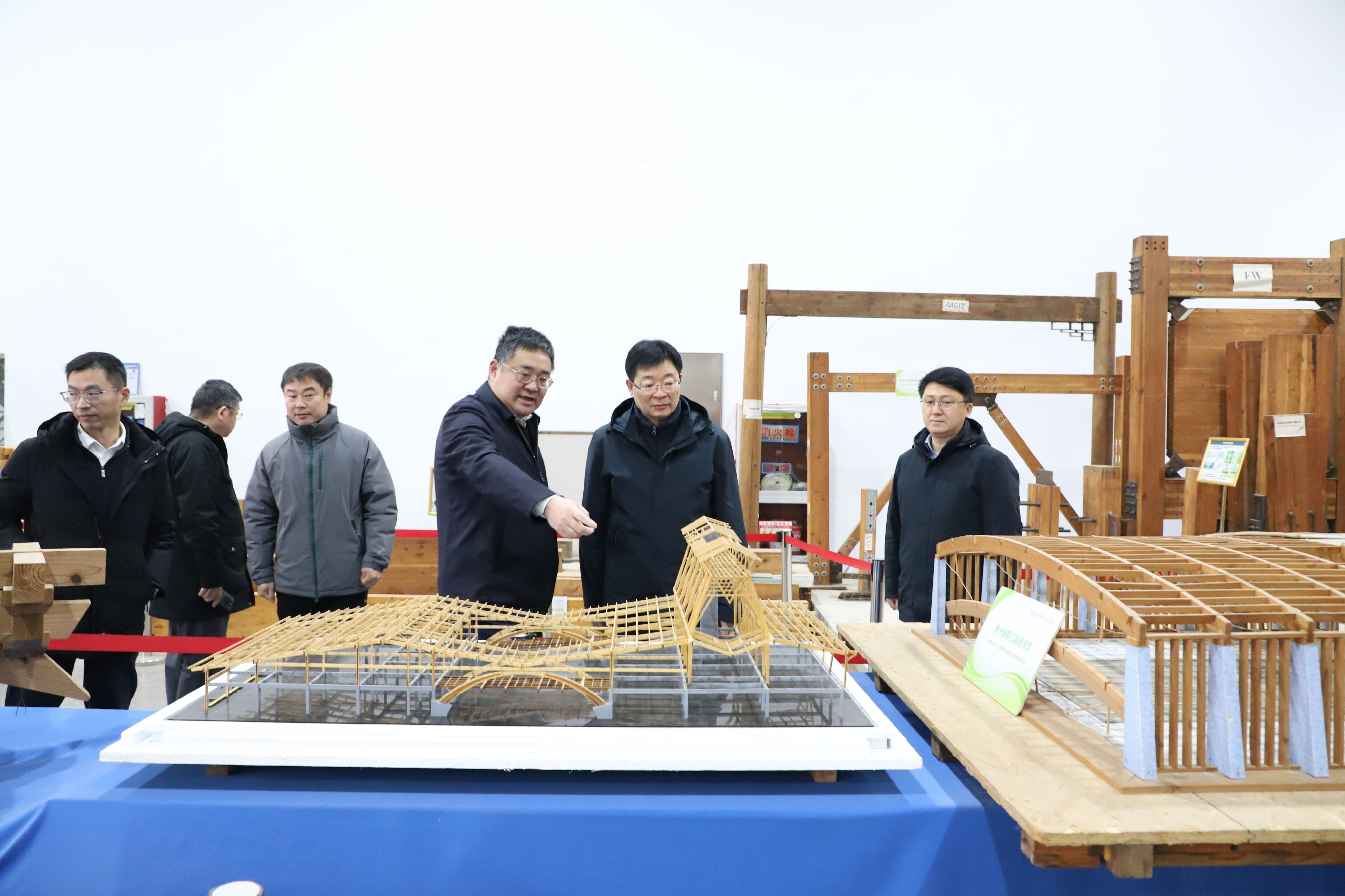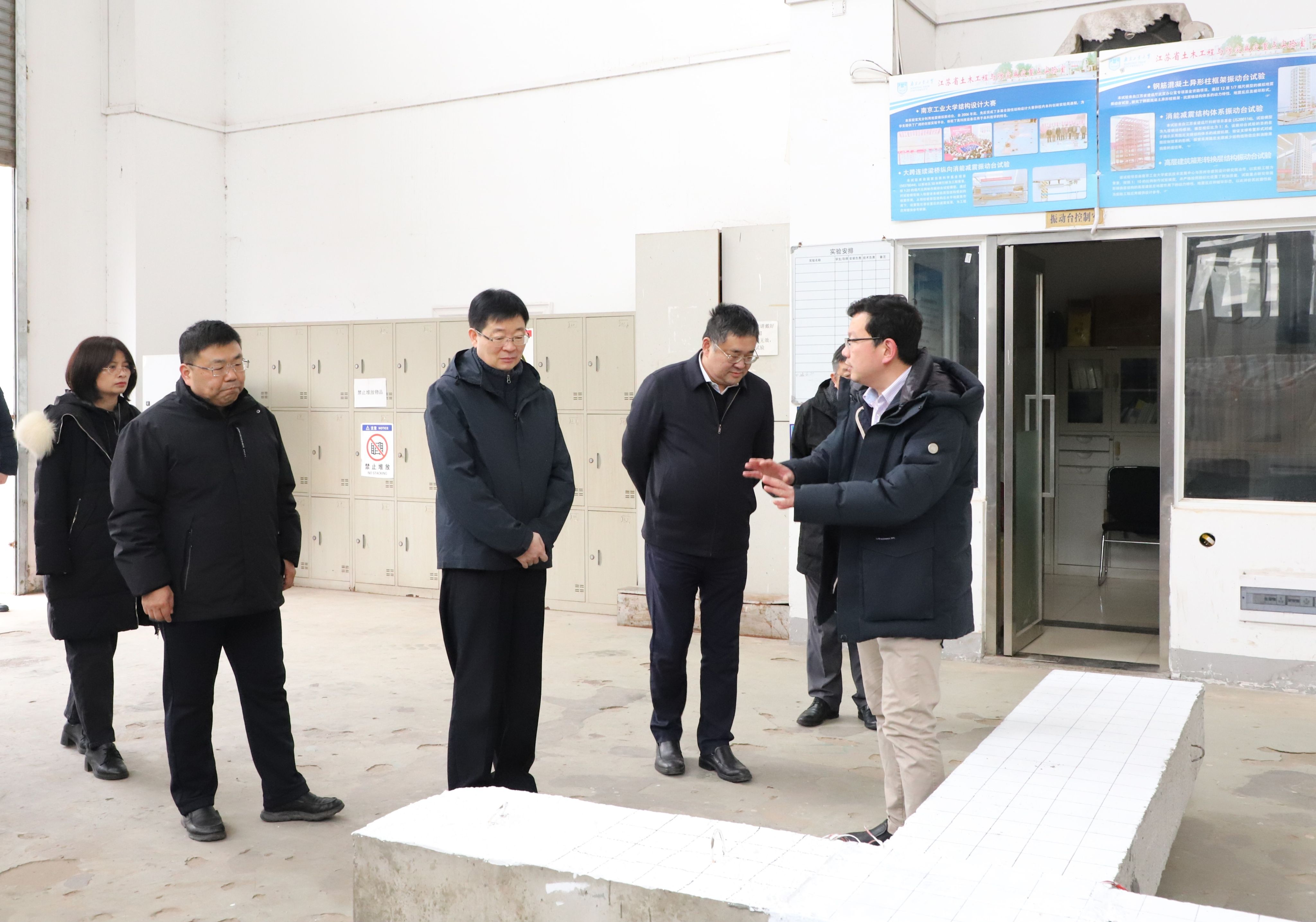 在副校长陆伟东、tyc1286太阳成集团党委书记张涛、院长方海的陪同下,祝江南总经理一行参观了tyc1286太阳成集团现代木结构实验室、复合材料结构实验室、结构综合实验室和智慧建造实验室,并合影留念。