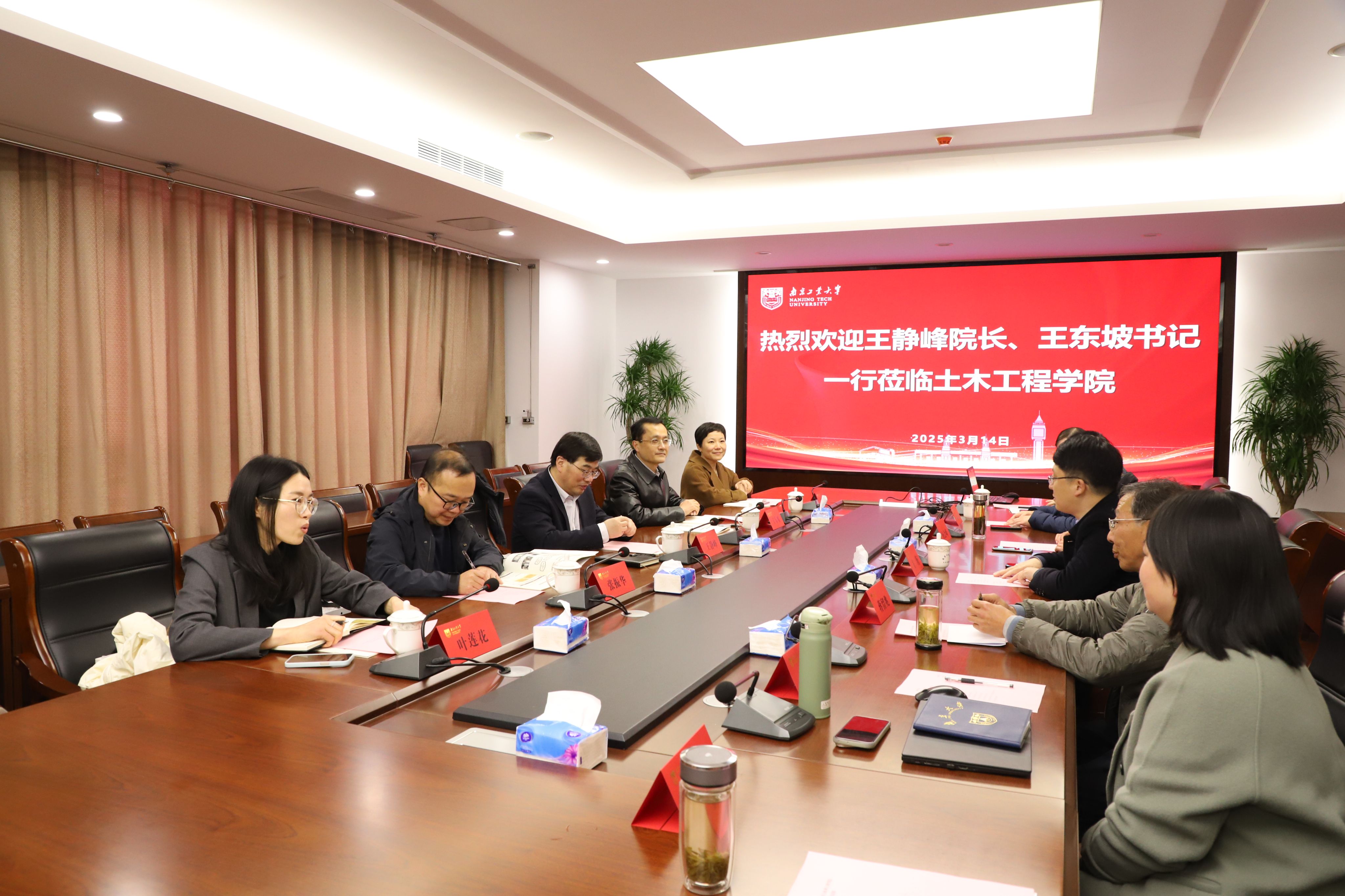 314日下午,合肥工业大学土木与水利工程学院院长王静峰和党委书记王东坡一行到访太阳成官网调研交流,该院副院长张振华、党委副书记兼纪委书记魏婷和行政科员叶莲花随行来访。