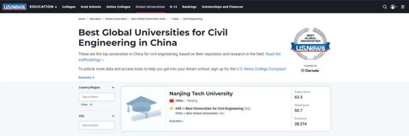 近日,《U.S. News 2025-2026年世界大学学科排名》正式发布。太阳成官网土木工程学科跻身全球前50(排49)(详情见https://www.usnews.com/education/best-global-universities/china/civil-engineering),充分彰显了学科强劲的国际竞争力和学术声誉。