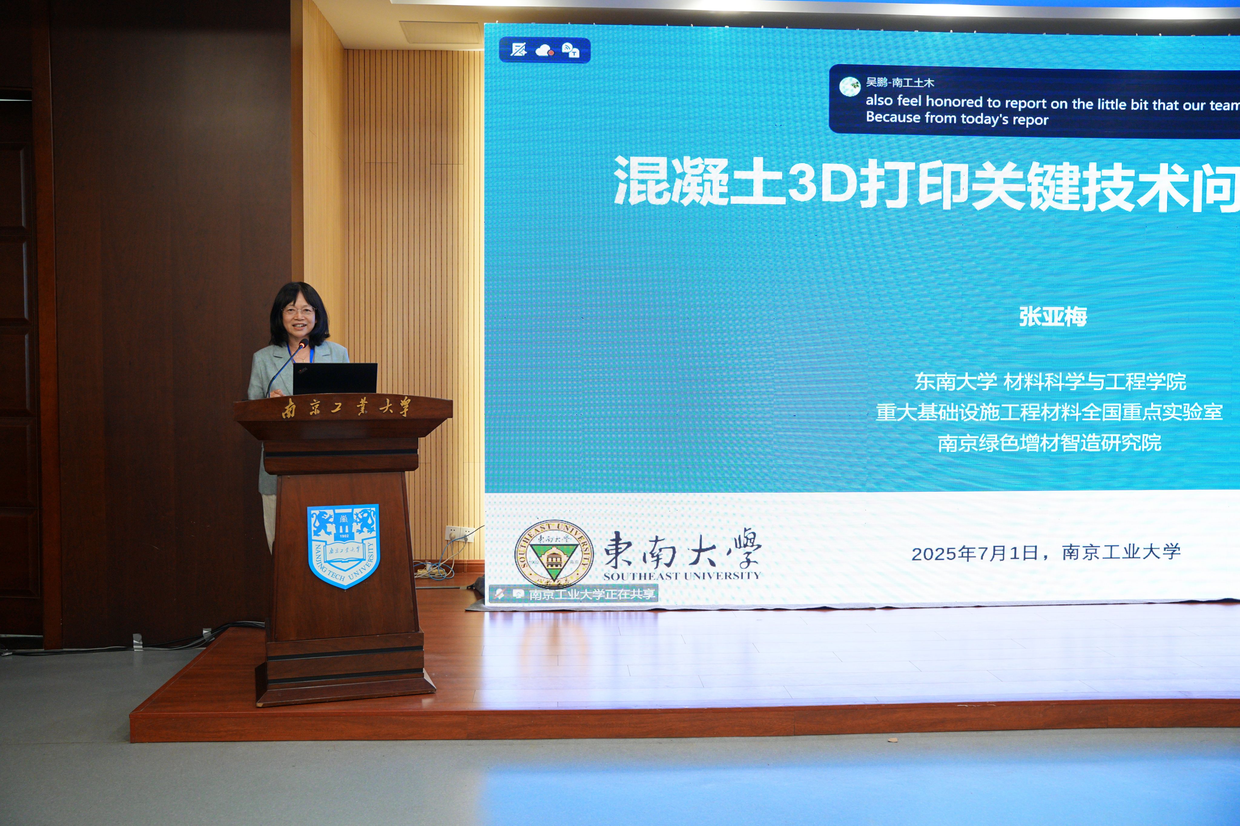 张亚梅教授带来一场题为《混凝土3D打印关键技术及应用》的学术报告,报告系统阐述了混凝土3D打印的技术原理、材料性能优化及智能化施工流程,并分享了该技术在建筑工业化、异形结构建造及可持续建筑领域的创新应用,报告指出,3D打印技术可大幅降低施工成本、缩短工期,并为绿色建筑发展提供新思路。学生们充满了好奇心,在会场内积极提出问题,使得交流互动变得异常火爆。