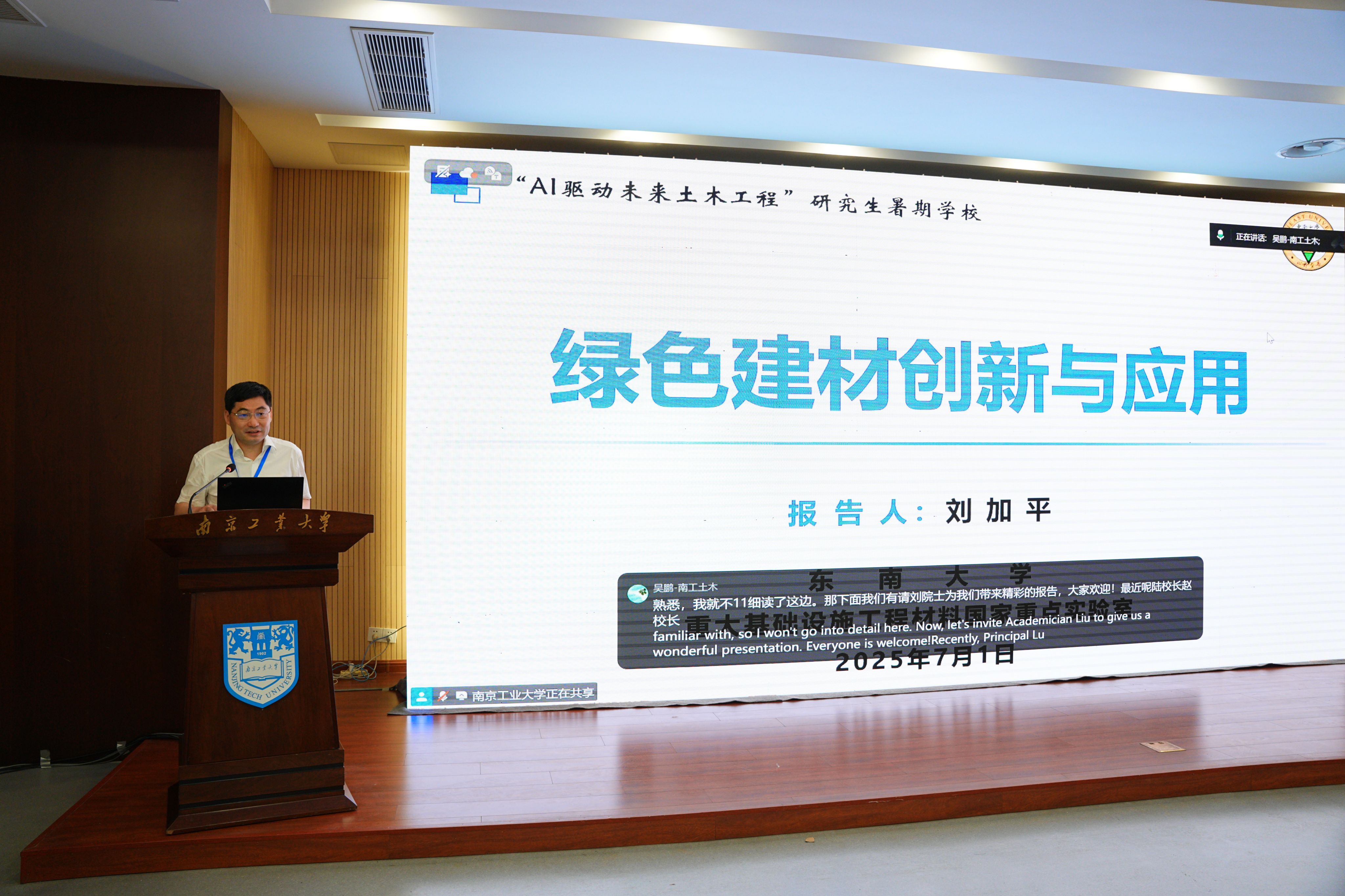 7月1日,由江苏省教育厅主办,tyc1286太阳成集团承办的2025“锦绣江苏”国际暑期学校和2025江苏省“AI驱动未来土木工程”研究生暑期学校进行第一天的学术报告。
