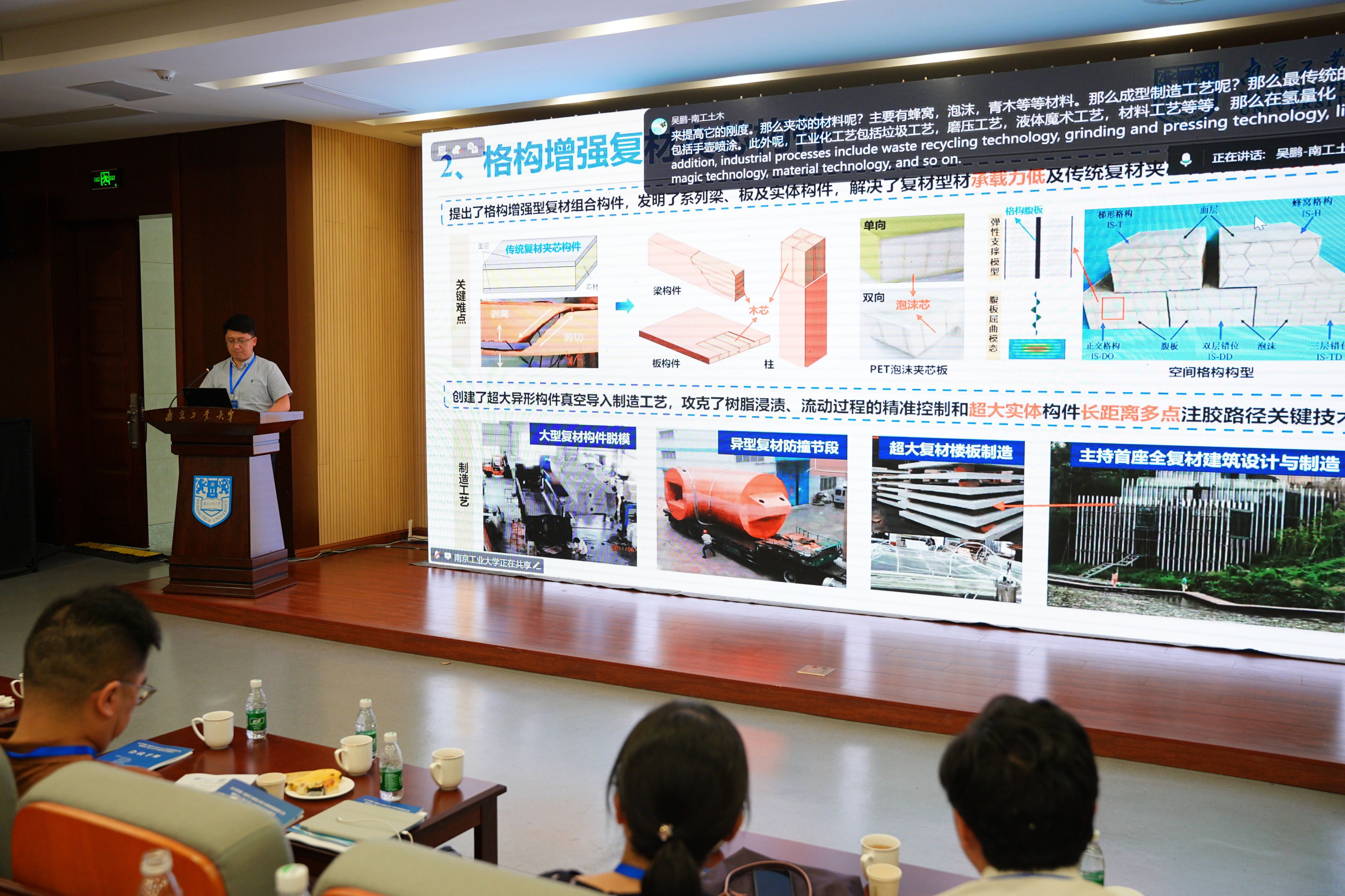 肖岩教授带来一场题为《竹木结构的传力机制:多高层和大跨结构设计案例》的学术报告,报告深入剖析了竹木材料在现代建筑中的力学性能与传力机制,结合多高层建筑和大跨度结构的实际案例,展示了竹木结构在可持续建筑设计中的创新应用与优势,肖教授强调,竹木结构不仅环保节能,还具有优异的抗震性能和设计灵活性,为绿色建筑发展提供了重要思路。与会师生对报告内容反响热烈,并就竹木材料的工程应用前景与肖岩教授展开深入交流。