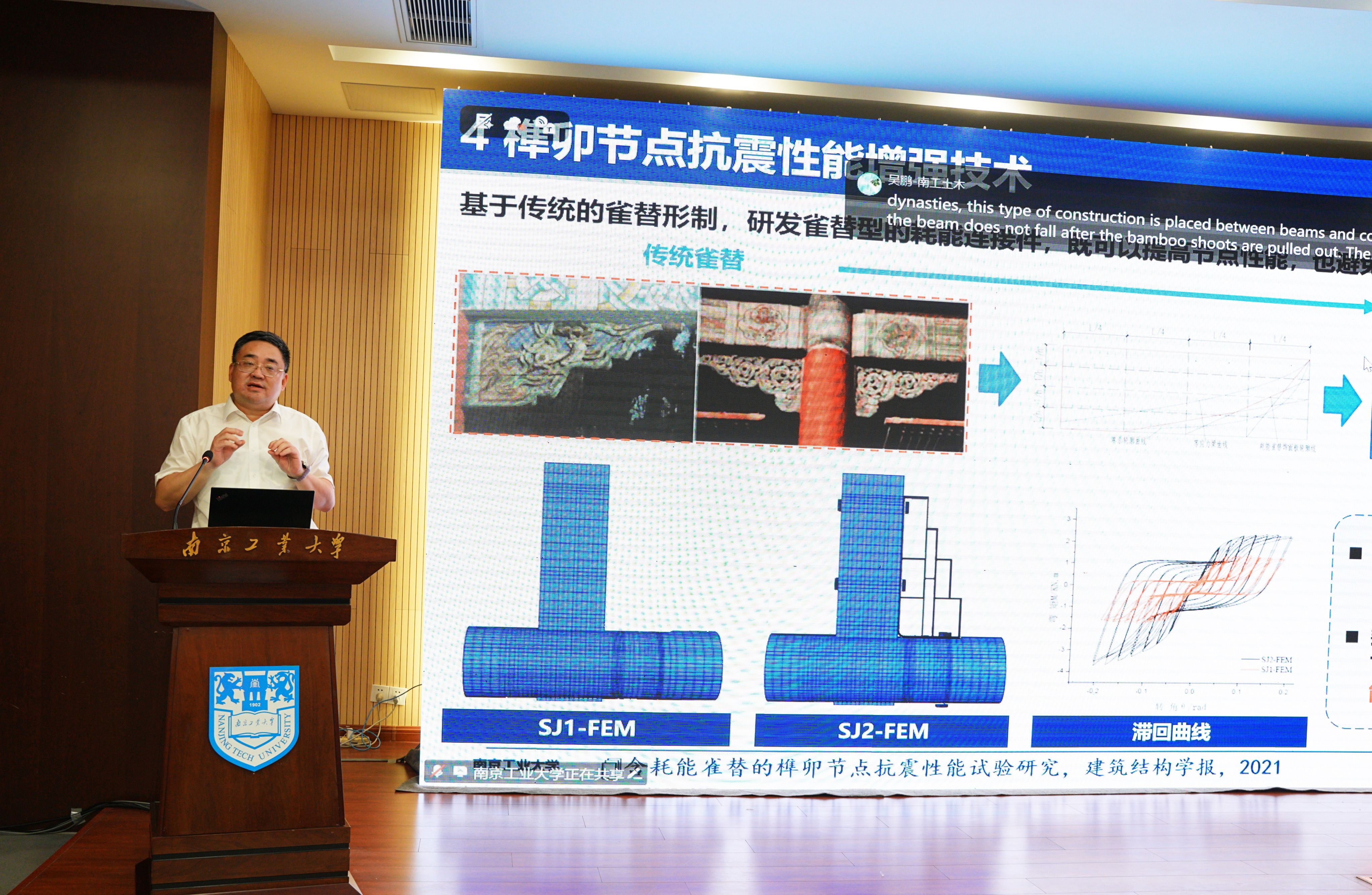 陆伟东教授带来一场题为《古建筑木结构构件材料及连接力学性能关键技术研究》的学术报告,报告深入探讨了古建筑木结构的材料特性、连接节点力学性能及抗震关键技术,结合现代实验方法与数值模拟,揭示了木结构的耐久机理与抗震机制。陆伟东教授与现场师生展开热烈讨论,解答了古建筑木结构技术应用中的关键问题。