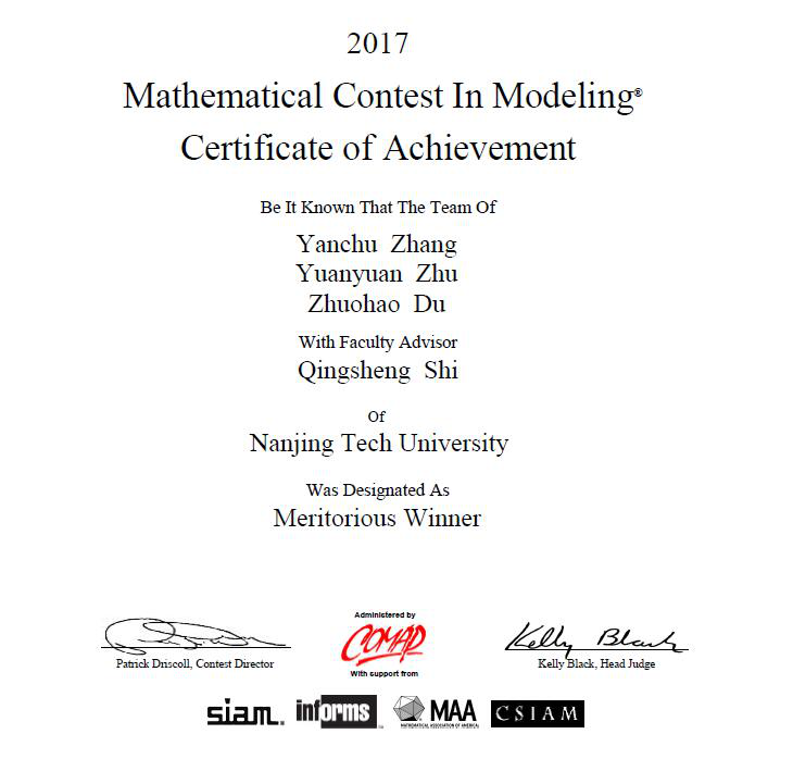 大二初期,张砚初开始参加到科创比赛中来。第一次参加华东赛时,由于专业知识的缺乏,设计出来的作品因不合常理而被淘汰。在这之后,他开始怀疑自己的实践能力并为此感到挫败。但一想到未来的计划,张砚初一直在不断地激励着自己。在学院竞赛指导老师的悉心指导下,张砚初重拾信心,查漏补缺,奋起直追,此后便在获奖的道路上一路飞奔……在大二上获全国大学生数学竞赛三等奖,大三上获全国大学生数学建模竞赛二等奖和全国大学生结构竞赛三等奖,大三寒假获美国大学生数学建模竞赛一等奖……这些奖项荣誉并没有让张砚初骄傲自满,他依然认真严谨,一丝不苟的努力学习,因为他知道未来的路还很长,距离自己的目标仍需拼搏努力。