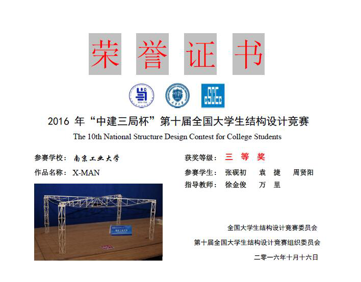 第十届全国大学生结构设计竞赛三等奖