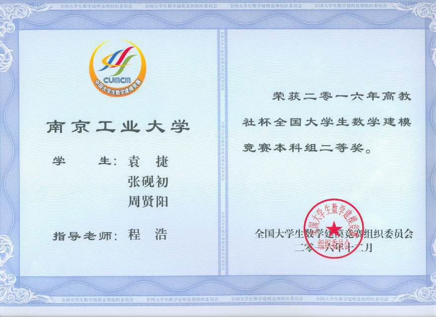 2016全国大学生数学建模竞赛二等奖