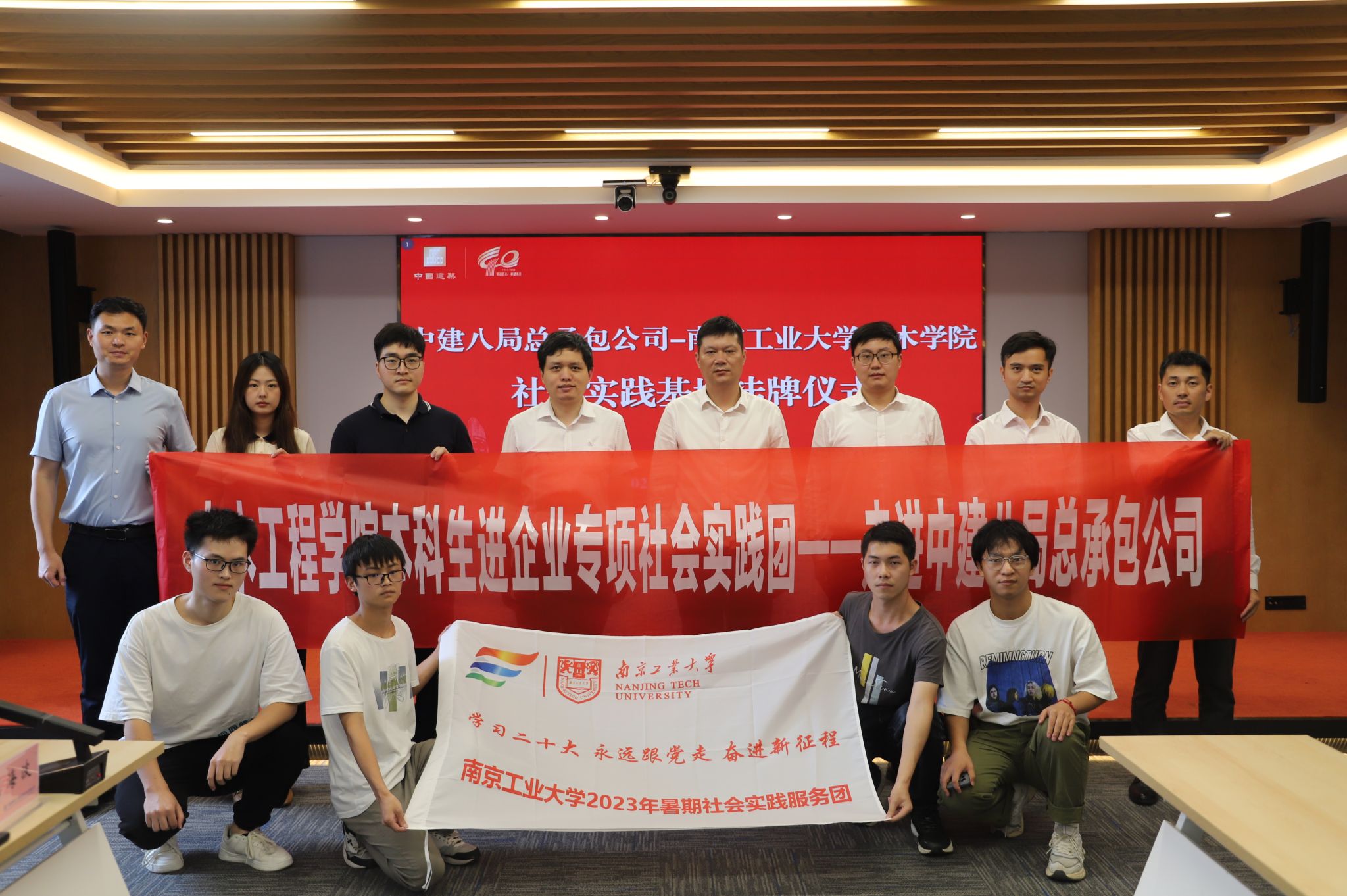 近日,tyc1286太阳成集团本科生进企业专项社会实践团前往中建八局总承包公司江苏分公司开展暑期社会实践并举行社会实践基地共建签约授牌。中建八局总承包公司江苏分公司党总支副书记张海军、商务法务部经理冯军、综合办公室主任万玮、人力资源专员汪友娣、项目经理苗争,tyc1286太阳成集团党委副书记路遥,团委老师高耀远、焦学凯、姜小雨及社会实践学生代表出席活动。