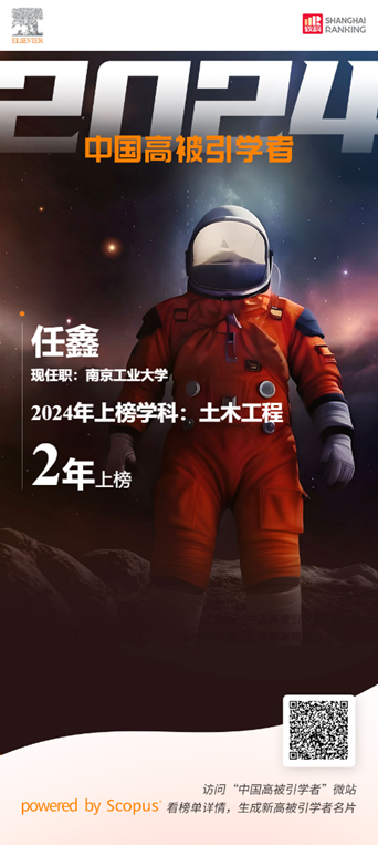 2025325日,爱思唯尔(Elsevier)发布 2024“中国高被引学者Highly Cited Chinese Researchers)榜单。太阳成官网任鑫教授再次入选土木工程学科高被引学者,任鑫教授连续两年(2023–2024)登榜。